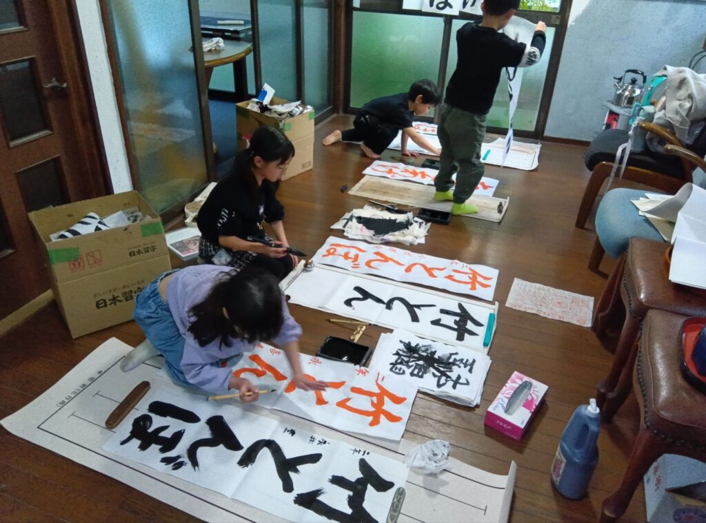 画仙紙課題は隣の人との間隔など色々気にしながら工夫しながらやっています!