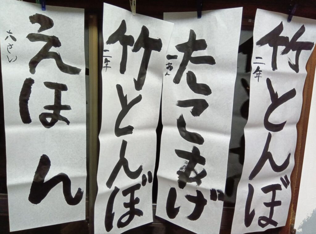 自分の中で納得のいく1枚を書き上げたらおしまいという形でお稽古をしていたら、2時間以上かかることもざらだった低学年クラスですが、この後に用事があるということで子供達がちゃんと急いでやったところピッタリ1時間くらいで終わりました。(片づけ含む)