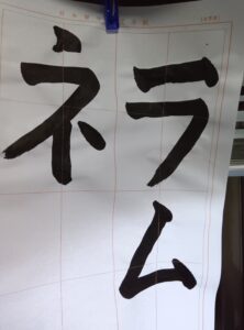 提出作品完成。カタカナはかなりバランスが取りづらかった印象。何枚かいても納得はいかなかったので集中力がまだ残っていた時の作品に決まりました。